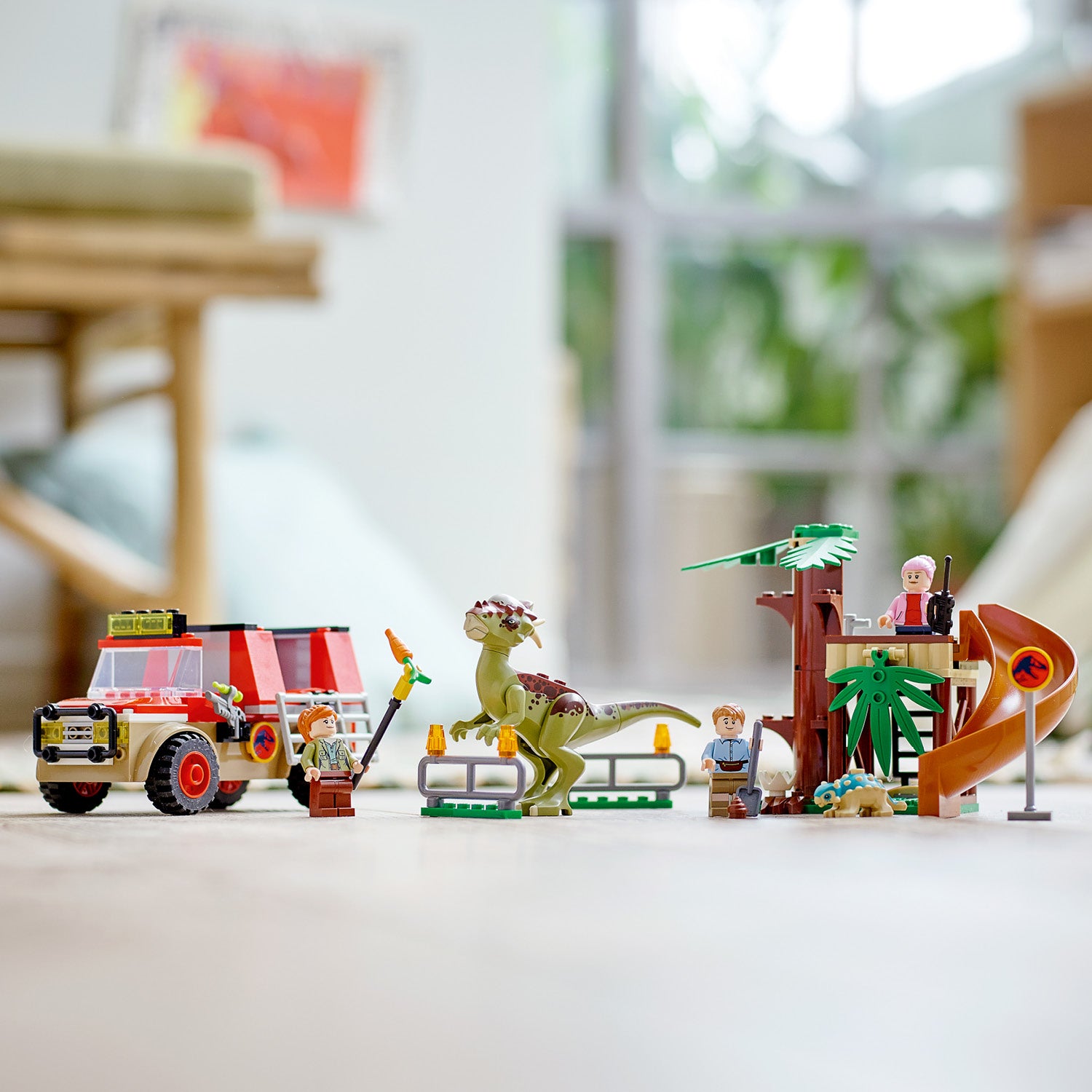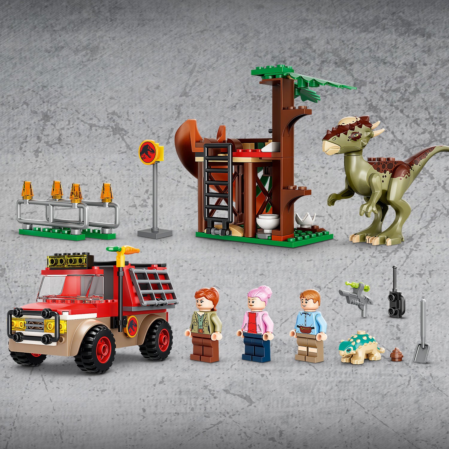 - The buildable toy tree house/observation post has a bed, sink, toilet, ladder and a slide for babydinosaur Bumpy, and the easy-to-build off-roader has a removable cage for the Stygimoloch.
