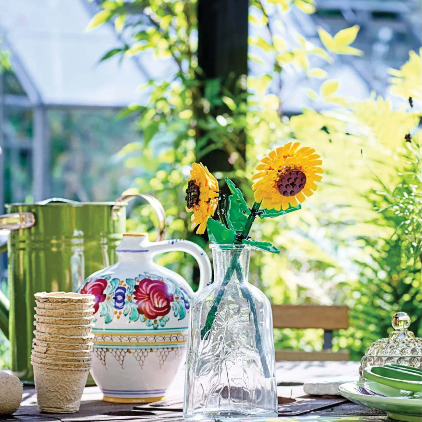 - Build a sunflower display – Create a display piece for any room with the colourful LEGO® Sunflowers (40524) building kit. Includes 2 sunflower blooms with adjustable green stems and leaves