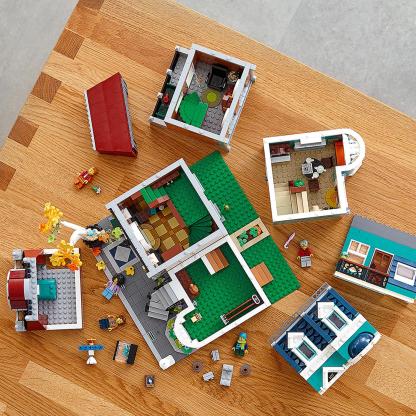 - This big 3-story LEGO® set features so many details, including a display window, bookshelves, reading nook and living spaces in the town house. 5 minifigures also help to really bring this collectors toy to life.