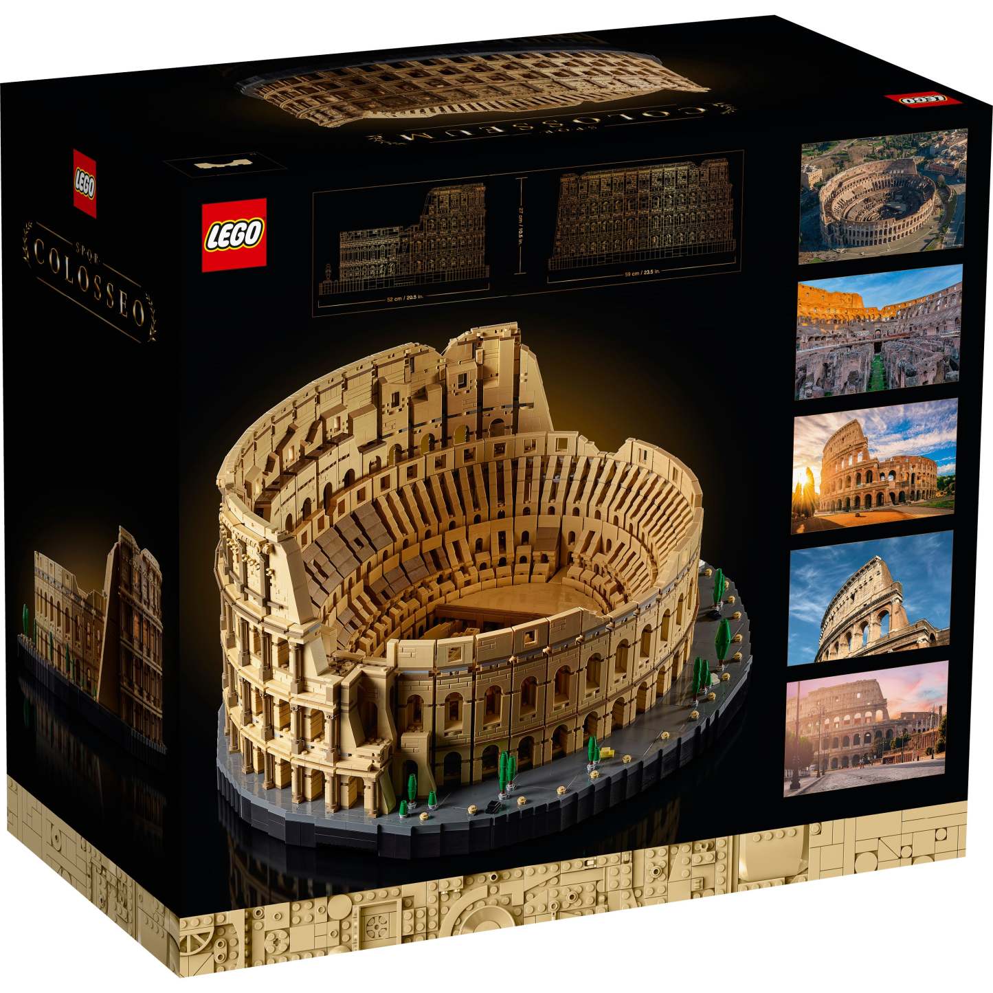 - This Colosseum architecture model measures over 10.5” (27cm) high, 20.5” (52cm) wide and 23.5” (59cm) deep. With 9,036 pieces it’s one of the biggest LEGO® sets in the world, but is easy to lift and turn.
