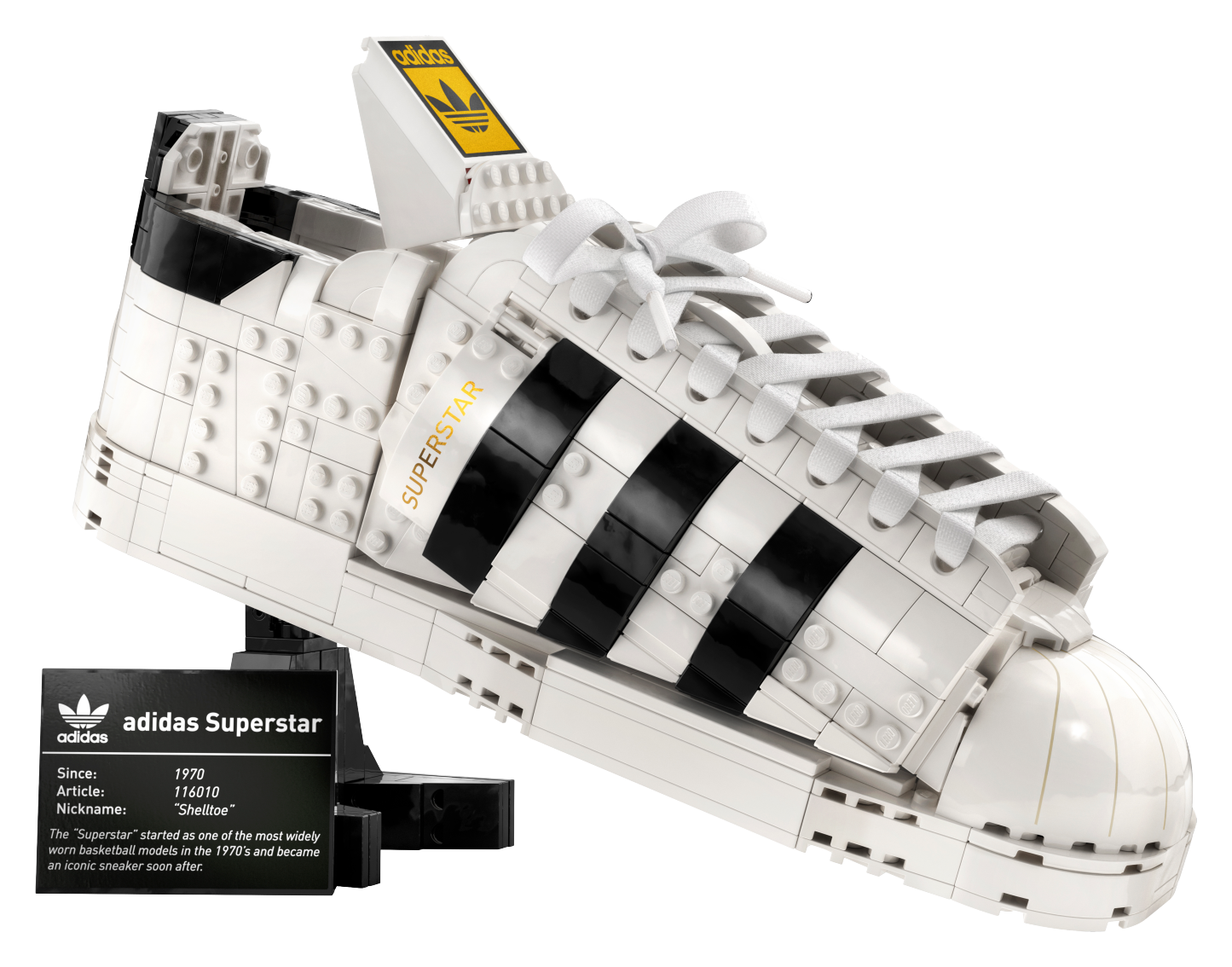 - This LEGO® adidas Originals Superstar set is part a series of creative building sets designed for adult LEGO building fans who appreciate stunning design and attention to detail.