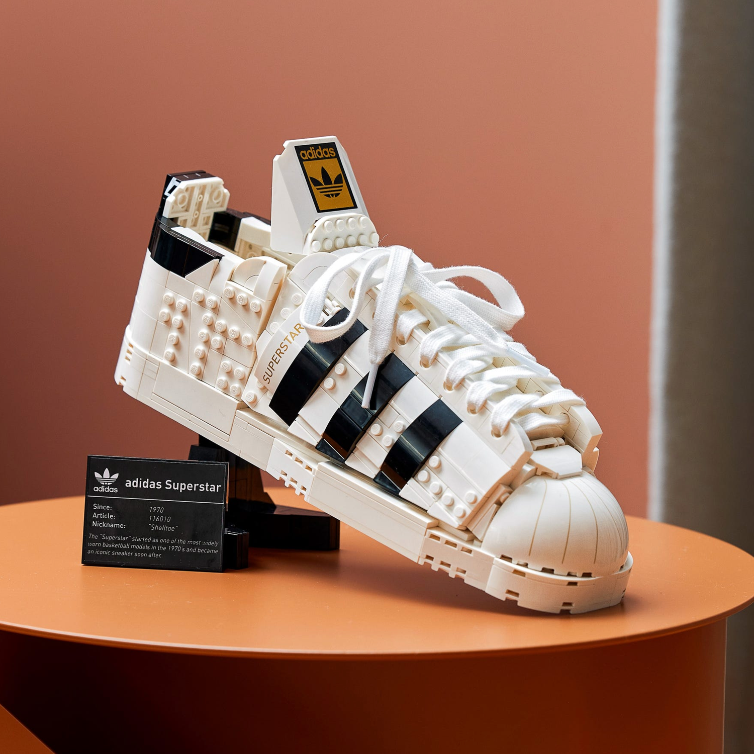 This set is part of a collection of LEGO building kits for adults. With a display stand and plaque, this model will be appreciated by anyone who loves adidas and streetwear collectibles, as well as adult LEGO builders.