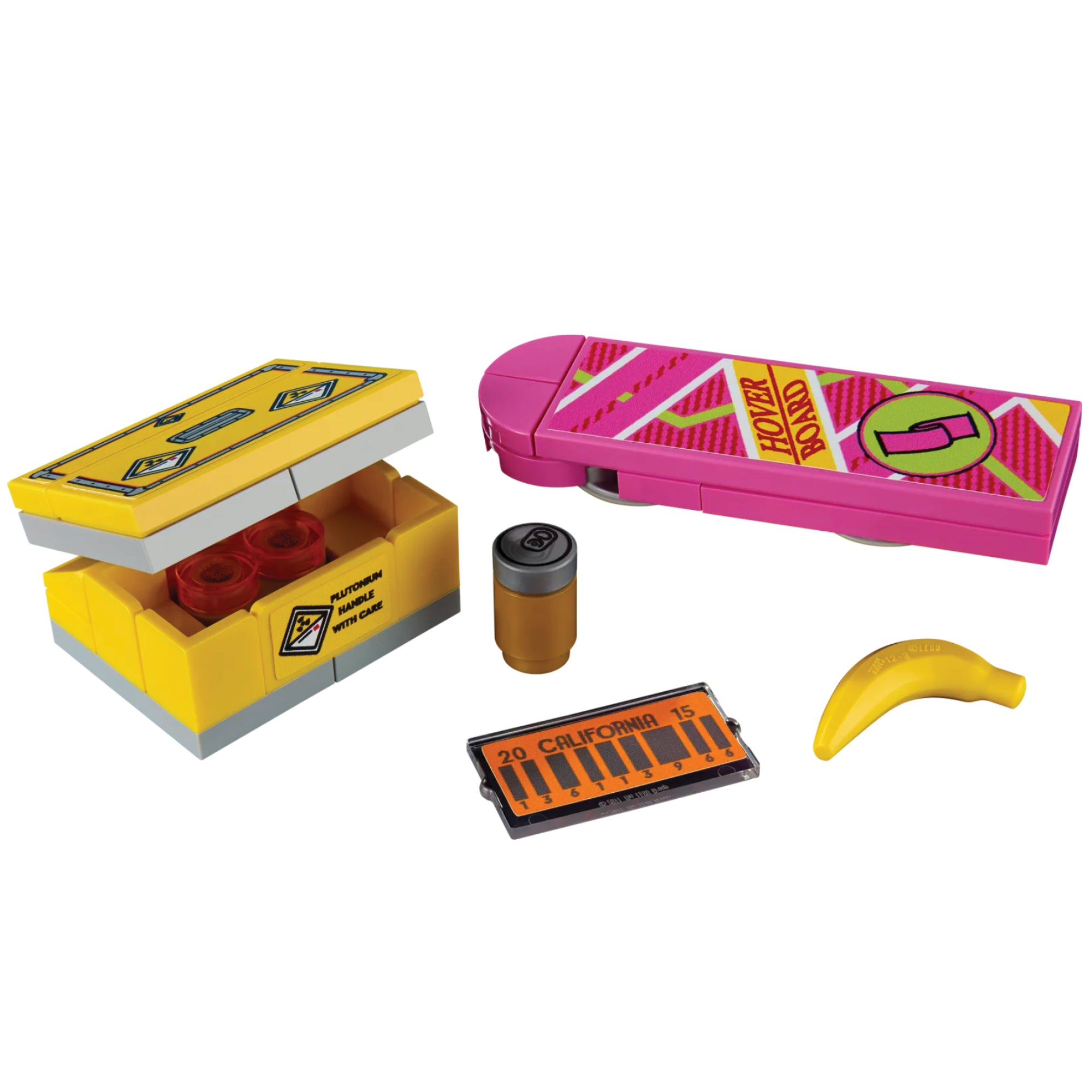 - Includes 2 minifigures, plus accessories – Spot details from the movies, like Marty’s hoverboard and the OUTATIME licence plate. Comes with Doc and Marty McFly minifigures to add to your display.