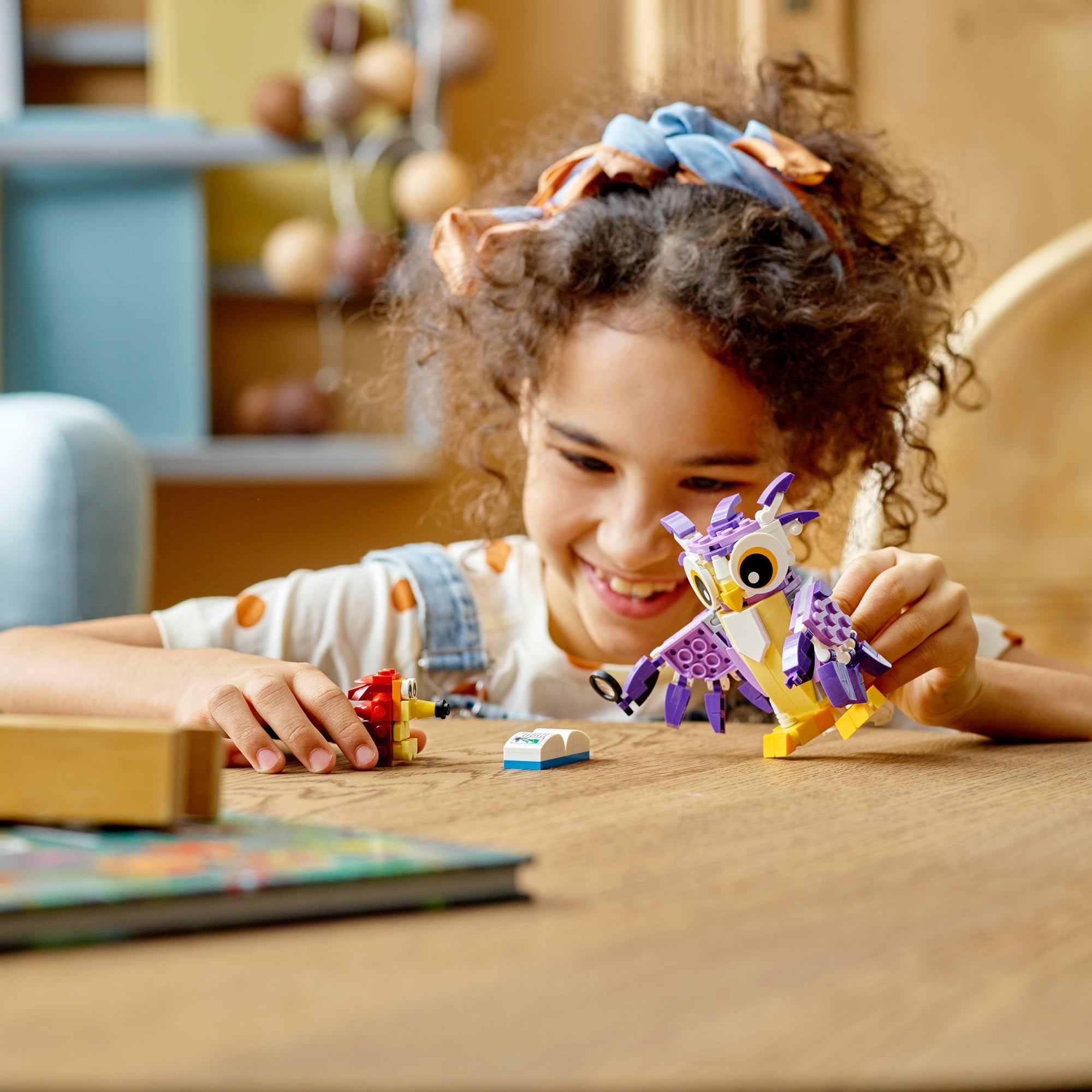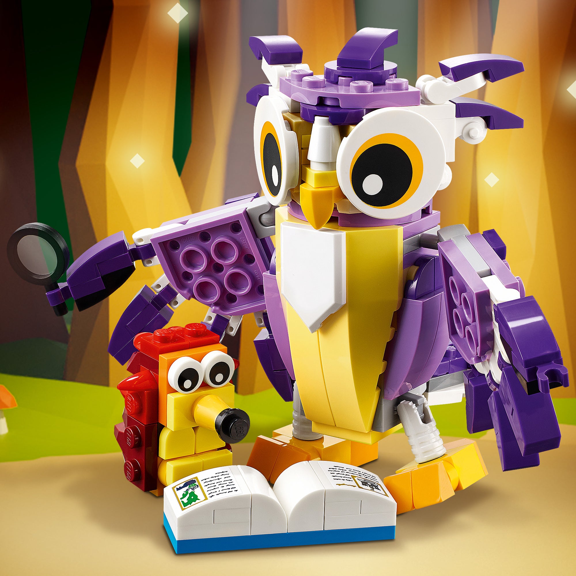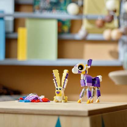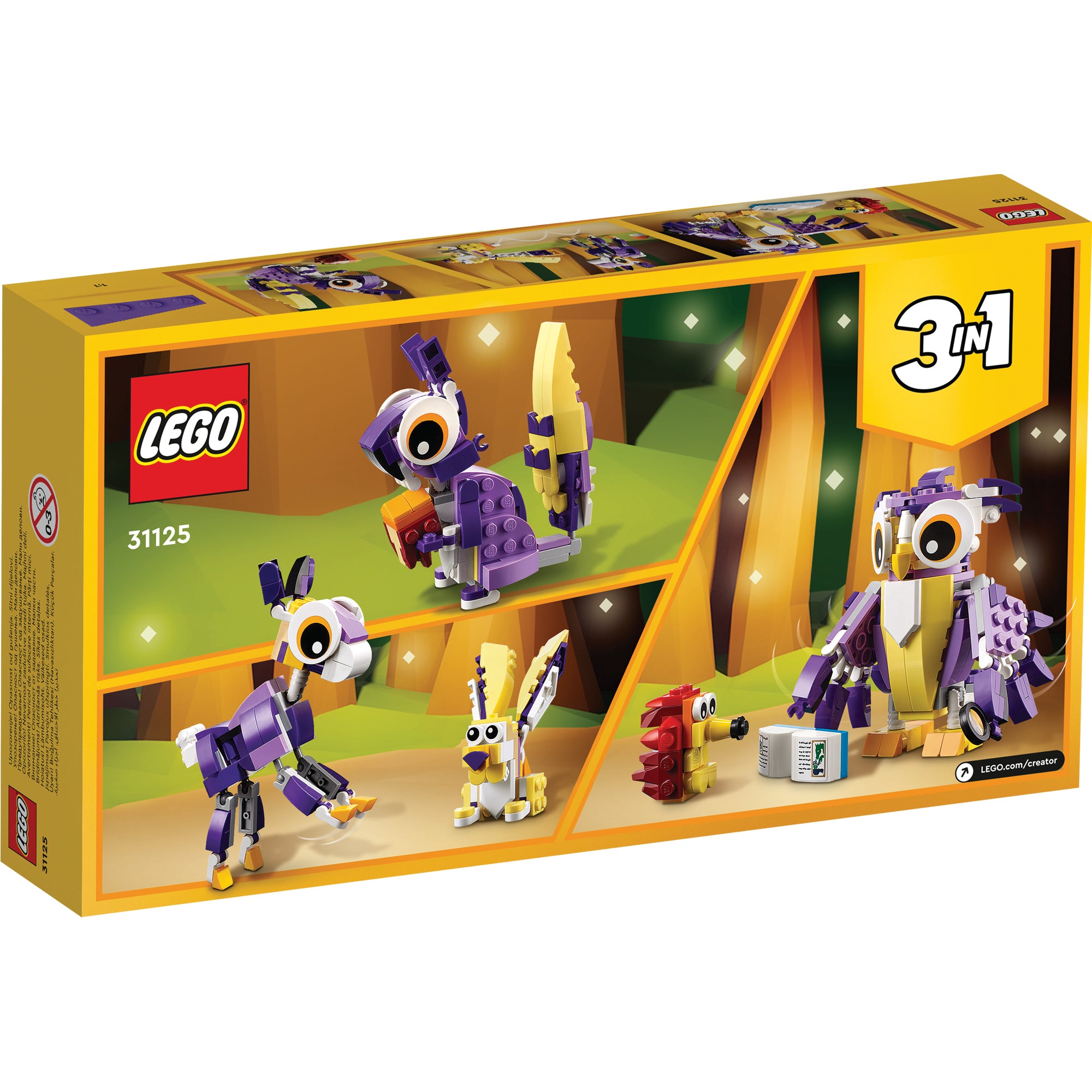 - 3 animal scenes in 1 set – Children can create stories with this LEGO® Creator 3in1 Fantasy Forest Creatures (31125) set with an owl and a hedgehog, a young deer and a rabbit, and a squirrel