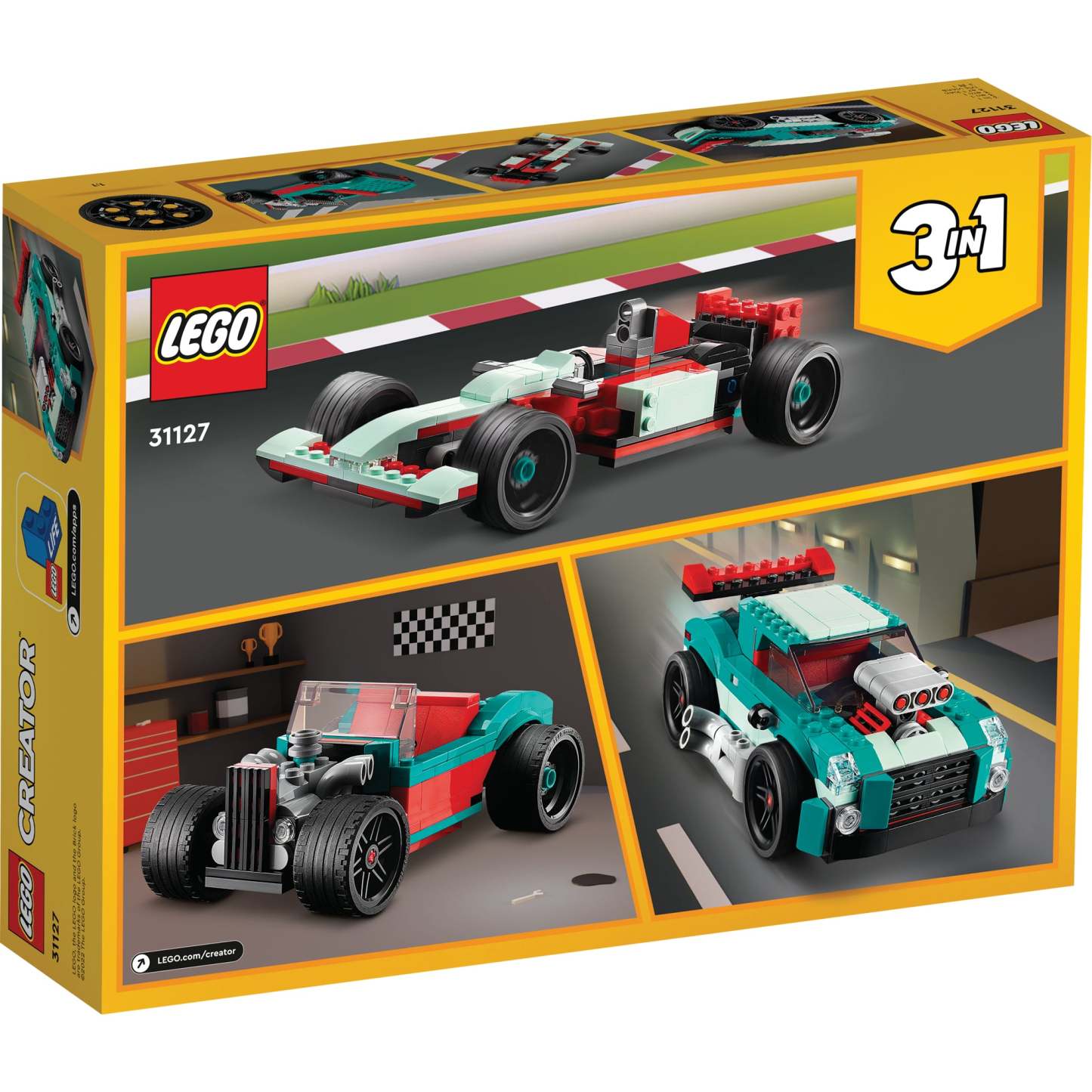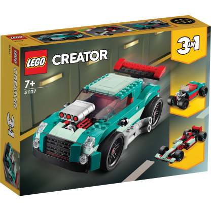 - 3in1 toy – Car fans can enjoy endless racing action with the LEGO® Creator 3in1 Street Racer (31127) building set, featuring 3 models in 1: a muscle car, a race car and a hot rod