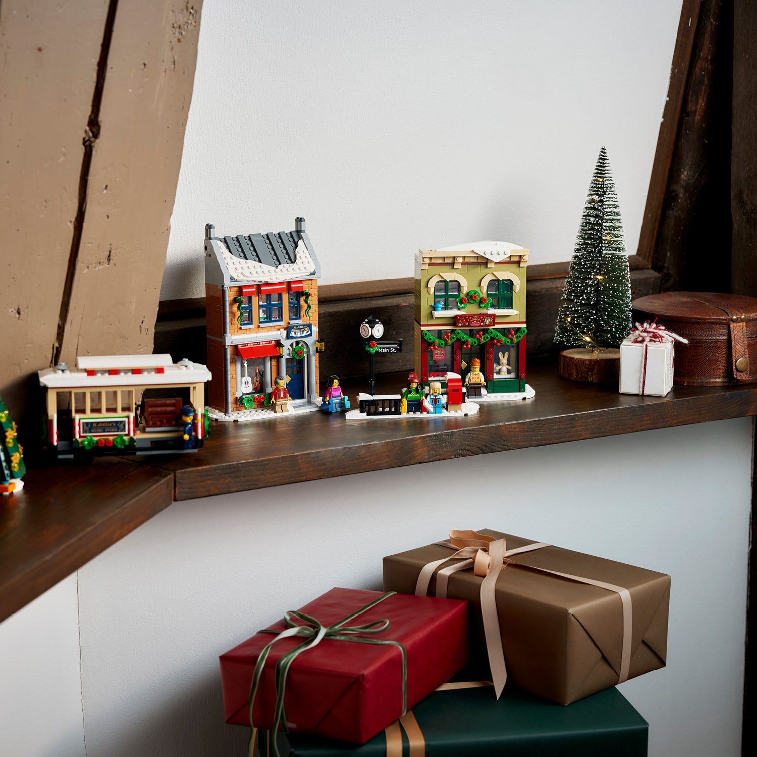 Packed with Yuletide cheer, the LEGO® Christmas High Street (10308) set is the latest addition to the popular LEGO Winter Village Collection. Build a sweet Christmas village display complete with a toyshop, music shop and shoppers, plus the shopkeepers and their cozy apartments. Then build the tram, ready to take the shoppers home after a fun outing.