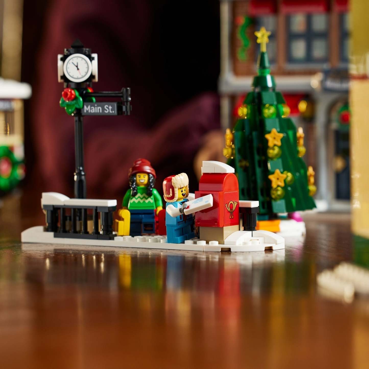 - 6 minifigures – Bring the LEGO® Christmas village display to life with the set’s ensemble of minifigures. There are 2 shoppers, a child posting a letter to Santa, 2 shopkeepers and a tram driver
