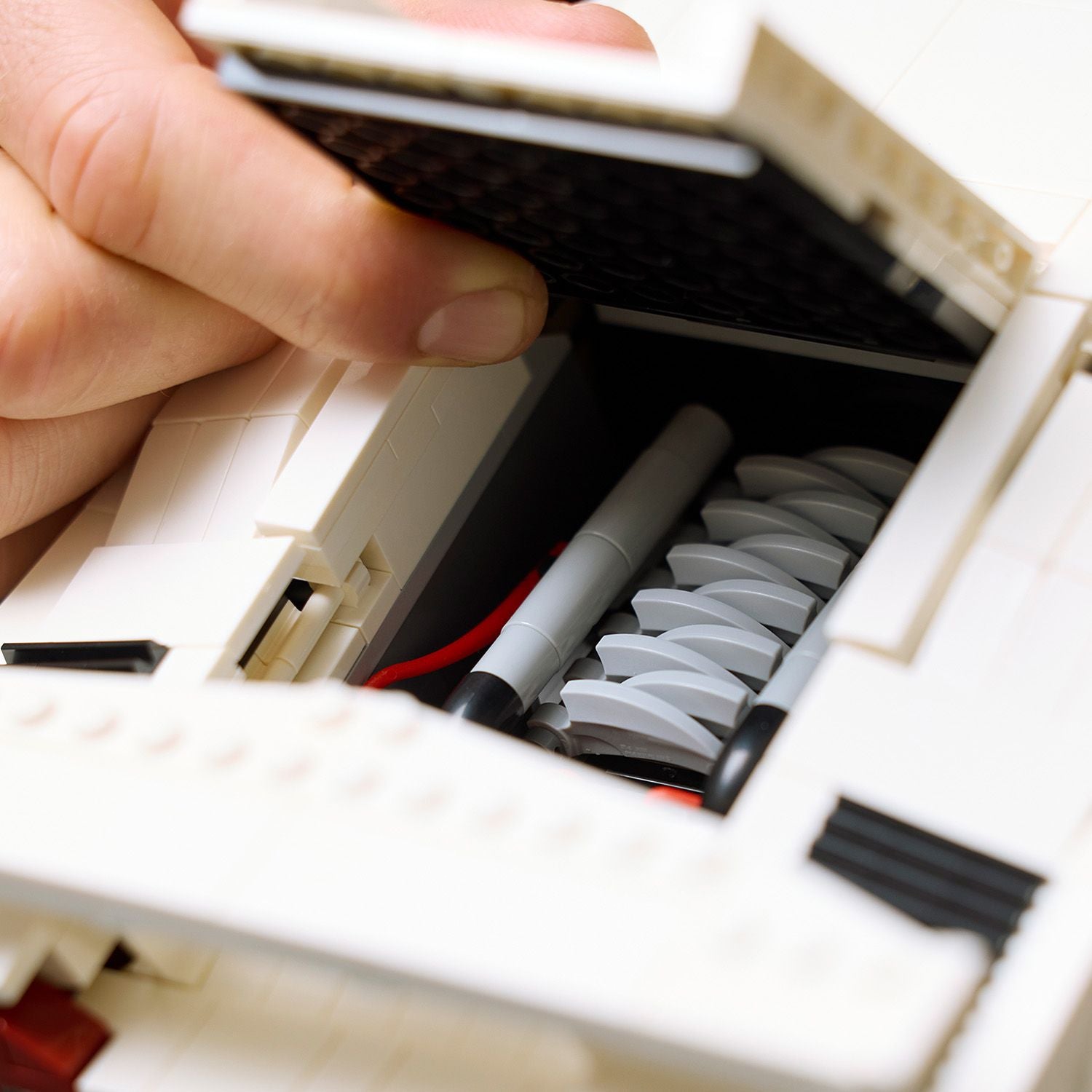 - Features and functions – This LEGO® car model has a detailed cockpit with working steering, opening scissor doors, boot and rear bonnet, a detailed V12 engine, deep-dish alloy wheels and a large rear spoiler