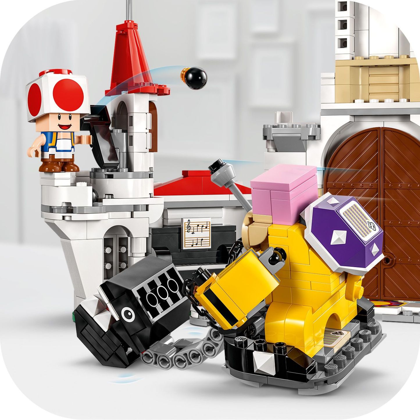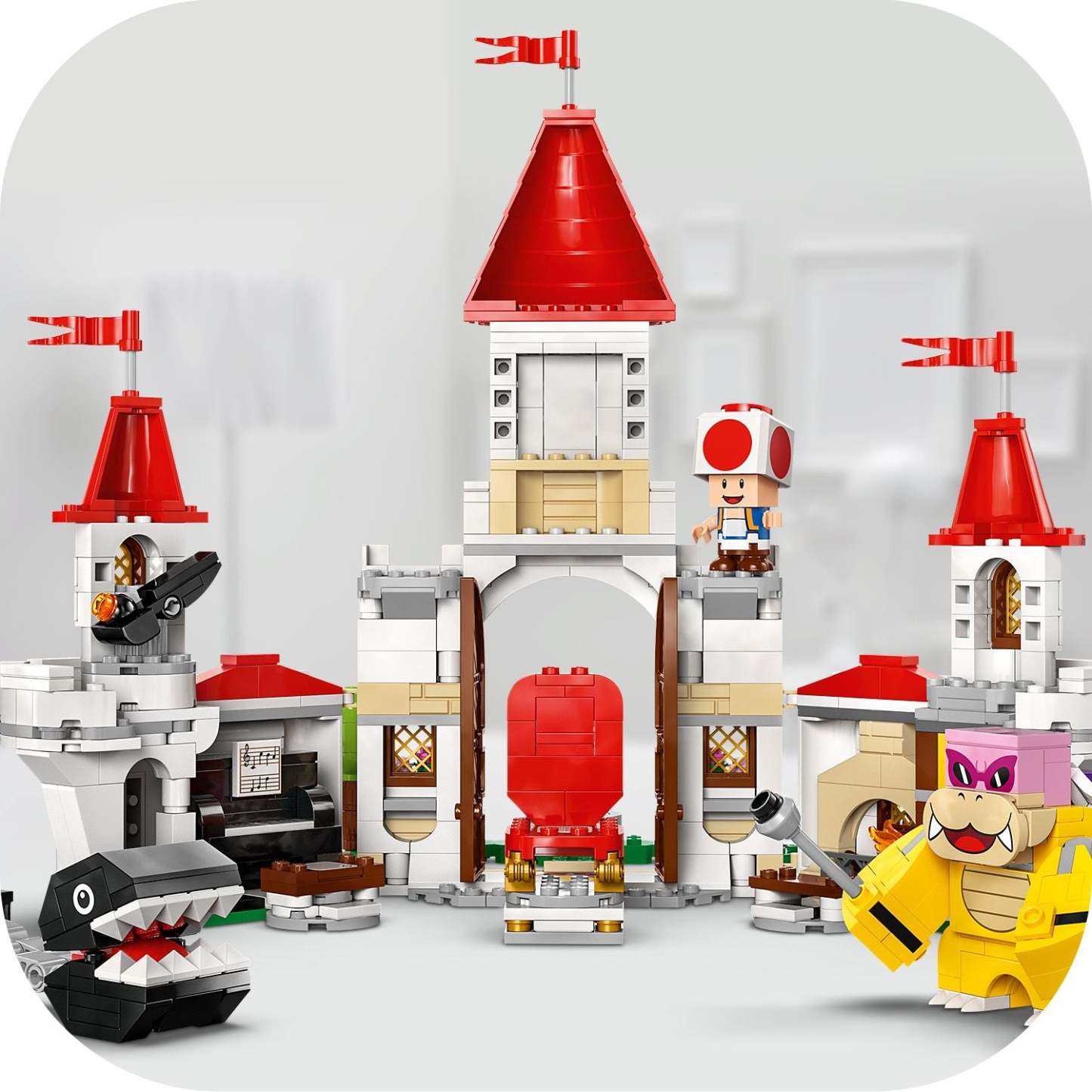 - Interactive digital play – Help LEGO® Mario™, LEGO® Luigi™ or LEGO® Peach™ (figures not included) to defeat Roy and take over his Chain Chomp, and sit on the piano seat to make music play