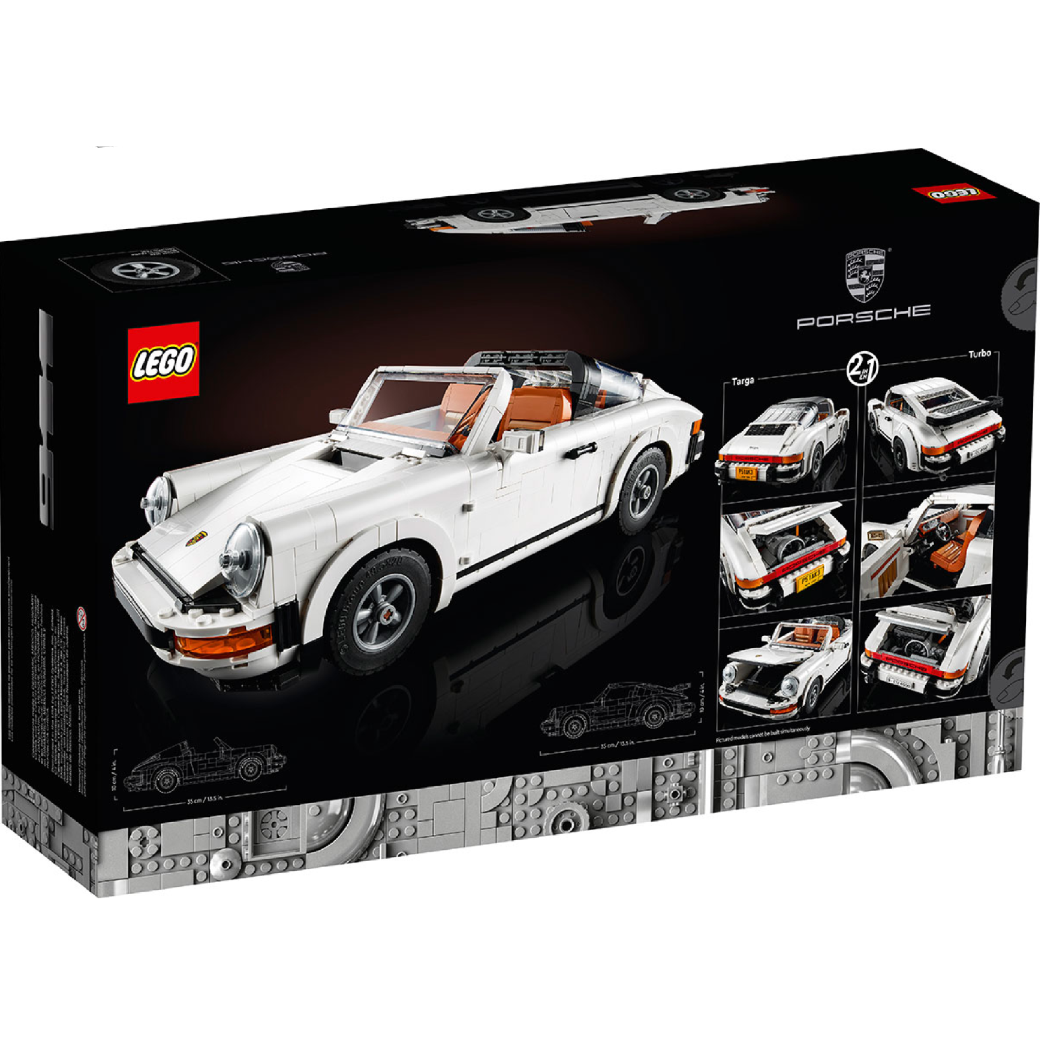 Celebrate the unmistakable style of Porsche with this fantastic building challenge as you create your own classic, collectible car with the LEGO® Porsche 911 (10295) model kit. Choose to build either the Turbo model with its turbo-charged engine or the Targa with its iconic Targa bar and a removable roof that stores under the hood.