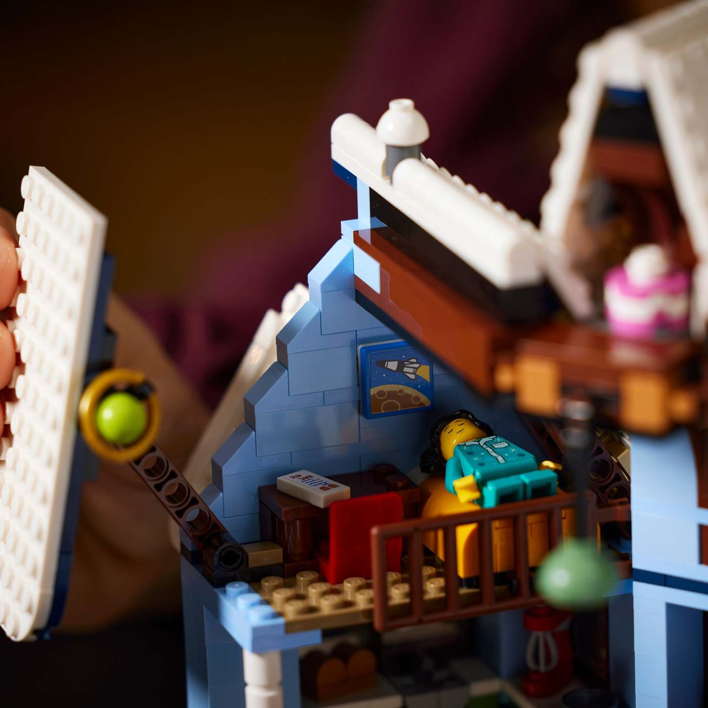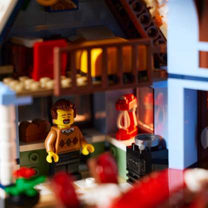 A build packed with traditions Spot all the ingredients that make Christmas Eve so special. There are stockings on the fireplace, a plate of cookies with milk for Santa, and even a place setting for him at the dining table. The exterior is equally detailed. See the Christmas tree, which lights up when you press down gently on the tree top. Extra details complete the cheerful scene with presents, a postbox and brick-built boughs under the ‘snow’-topped roof.